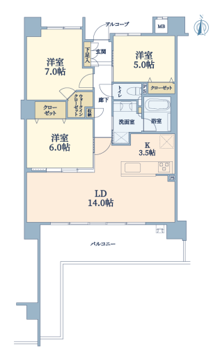 専有面積 壁芯 76.29㎡ 所在階 12階建/4階部分